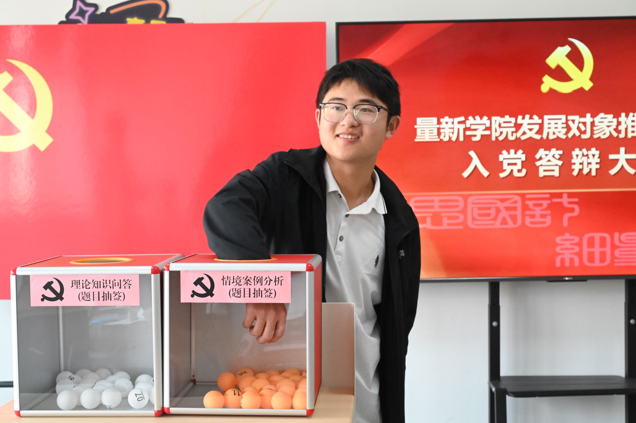 为确保入党公开答辩精细化、规范化,量新学院建立了动态题库,答辩时由发展对象候选人随机抽取。知识问答涉及党的基本理论和时事政治;案例分析侧重通过学习生活中的典型情境或热门话题,考察候选人的入党动机、政治立场、价值取向等。评议小组不仅注重其答辩表现,更看重其一贯表现、关键时刻表现,避免将学习成绩优异当作学生入党的唯一标准。