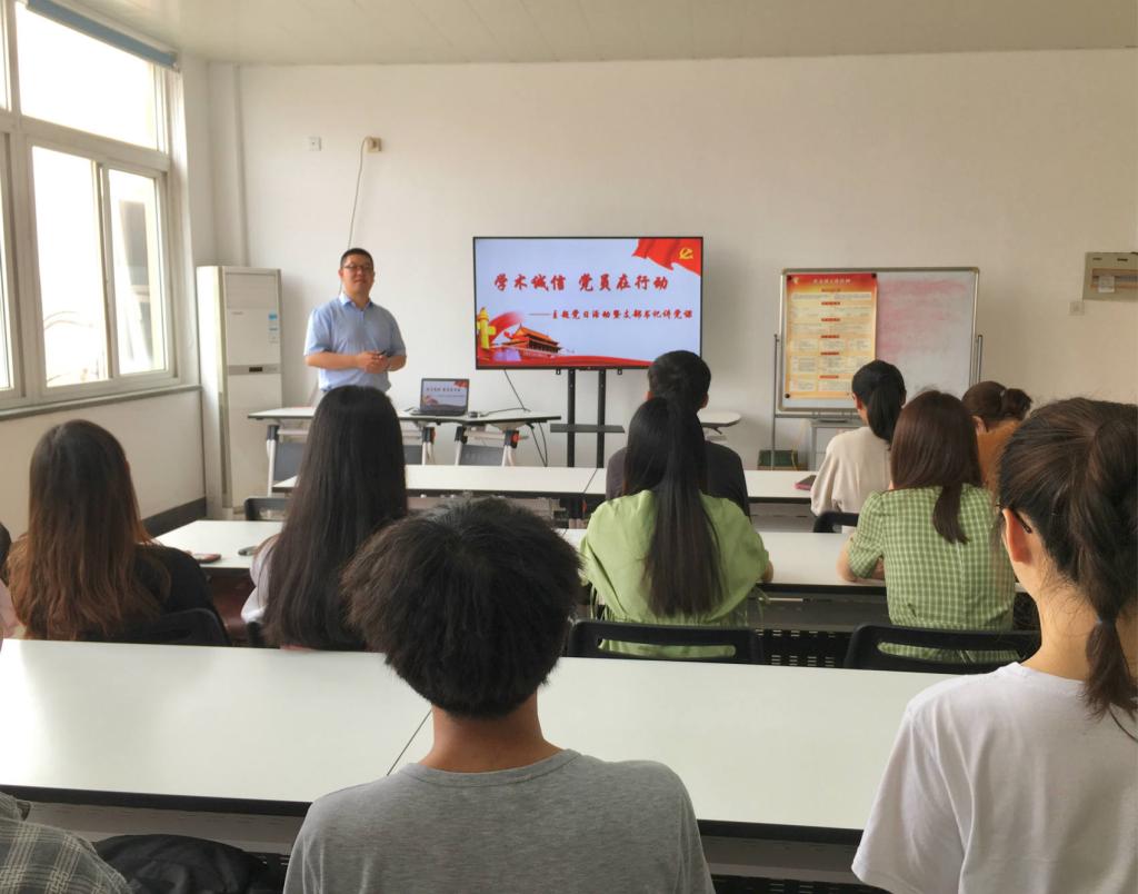 于兹瀛从什么是学术不端、结合学生实际重点讲述了论文抄袭和考试作弊产生的危害、针对学术不端国内外采取的具体惩戒措施和警示等方面,结合引用具体的案例,为参会学生党员上了一堂简短而深刻的党课。