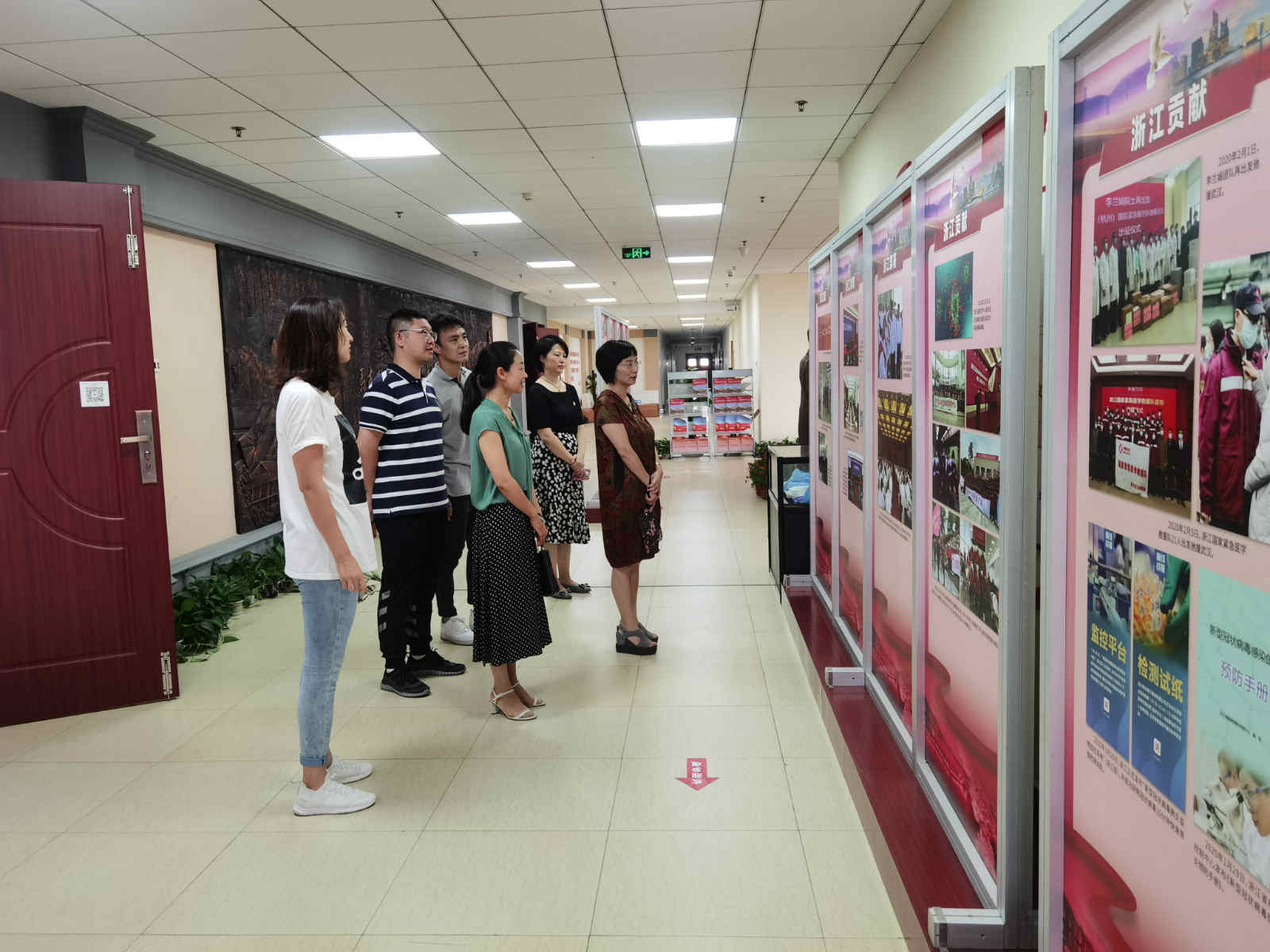 会前,全体教工党员在逸夫图书馆七楼集体参观了以“勠力同心 共克时艰”为主题的“仲夏已清和”抗疫图片展。