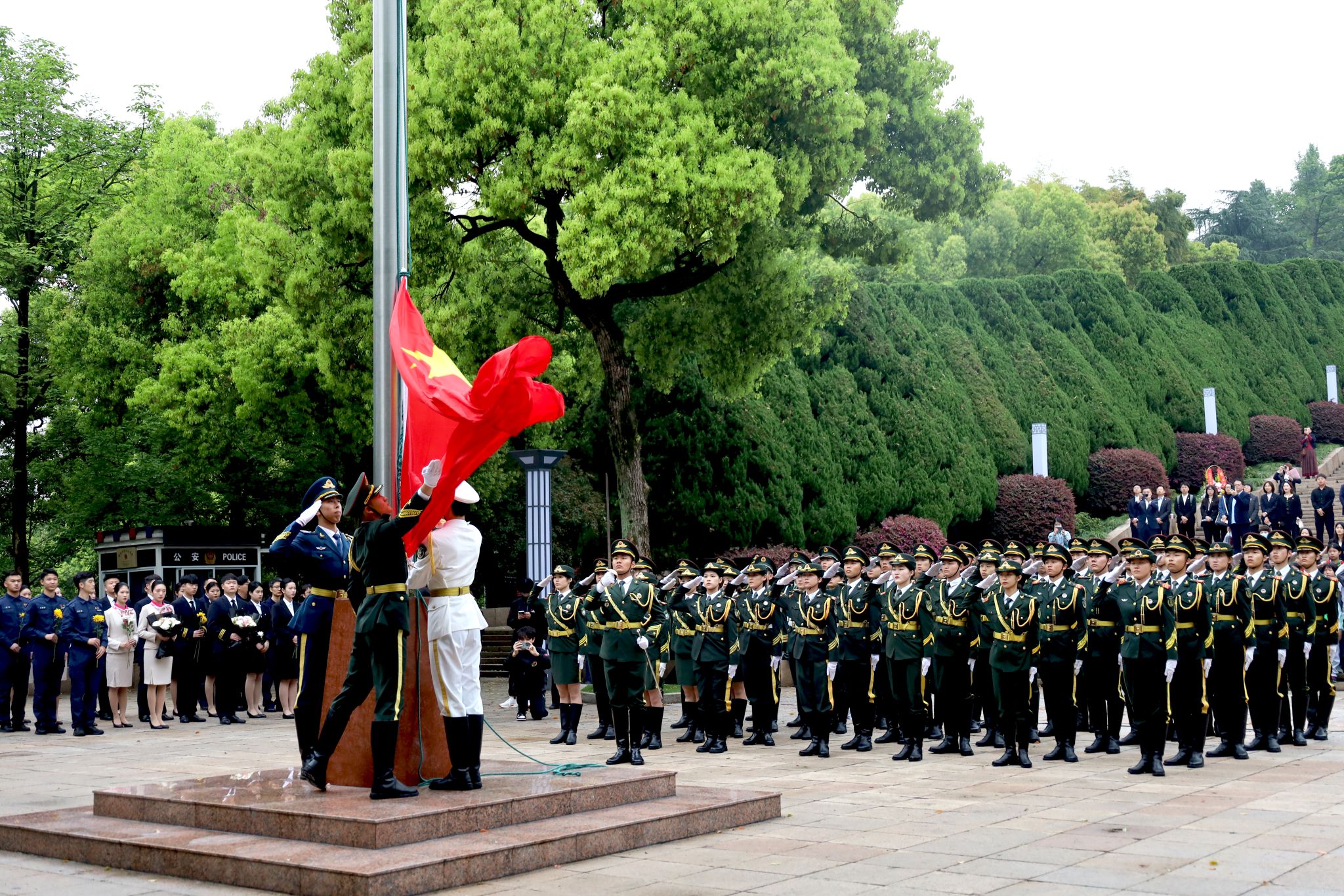 师生党员还与现场杭州各界群众一同观摩了清明祭英烈主题升旗仪式。