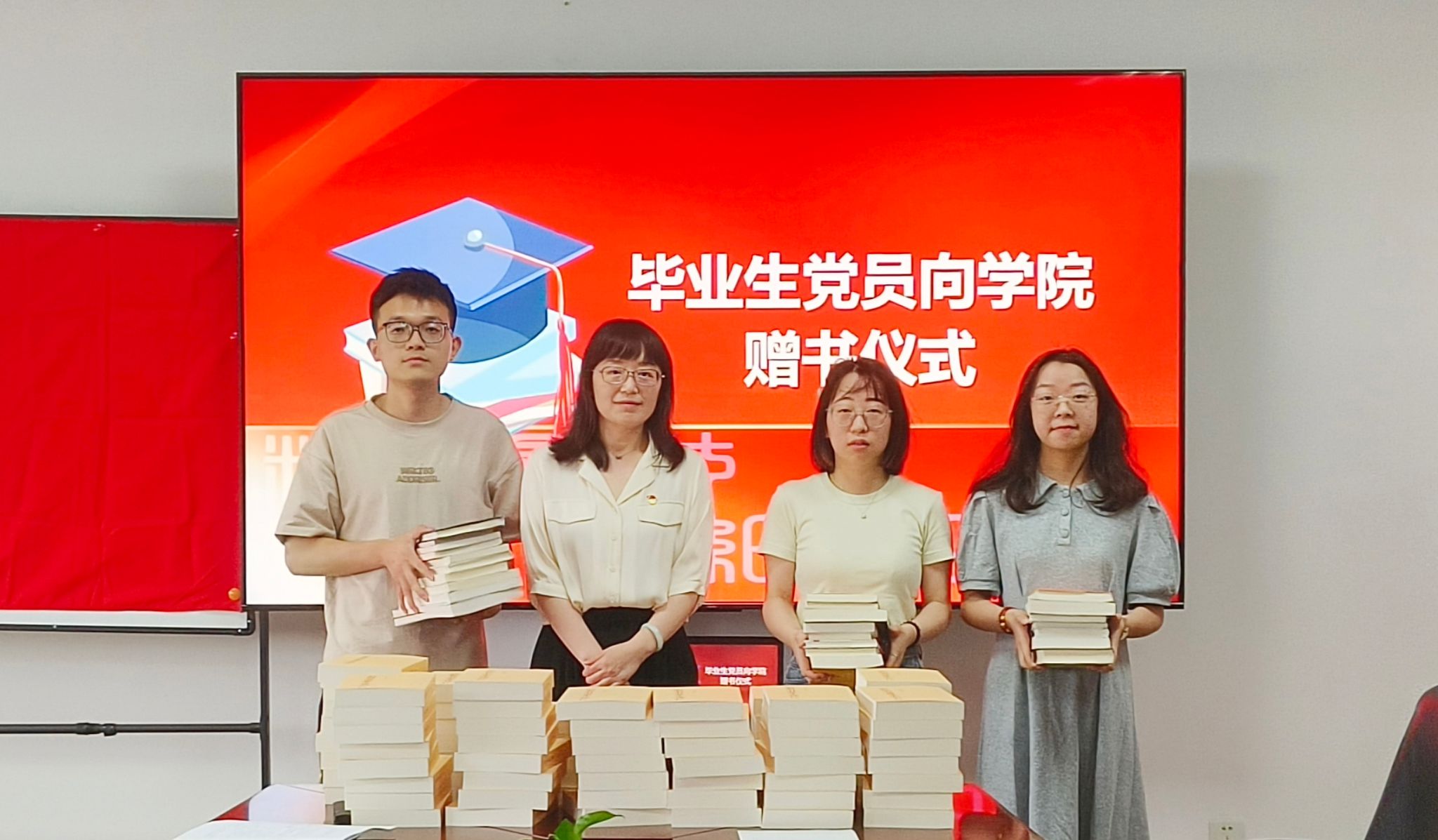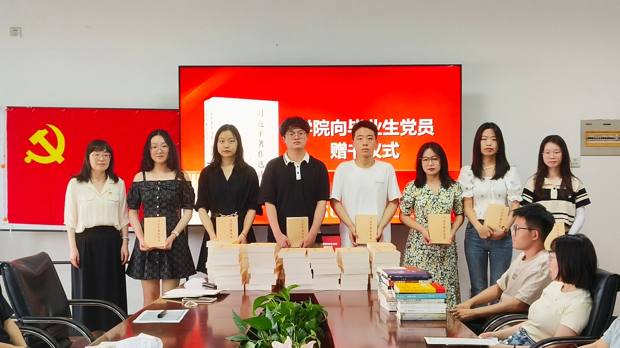 院党总支书记顾佳隽代表学院向2023届48名毕业生党员赠送了《习近平著作选读》(第一、二卷),叮嘱大家铭记党员身份,牢记国之大者,在新的起点上继续认真学习、锤炼本领,继续发挥党员先锋模范作用,做有理想、敢担当、能吃苦、肯奋斗的新时代好青年。毕业生党员则选择各自最喜爱的一本书,回赠学院,用特别的方式向学弟学妹表达美好祝福,向母校致以深深眷恋。