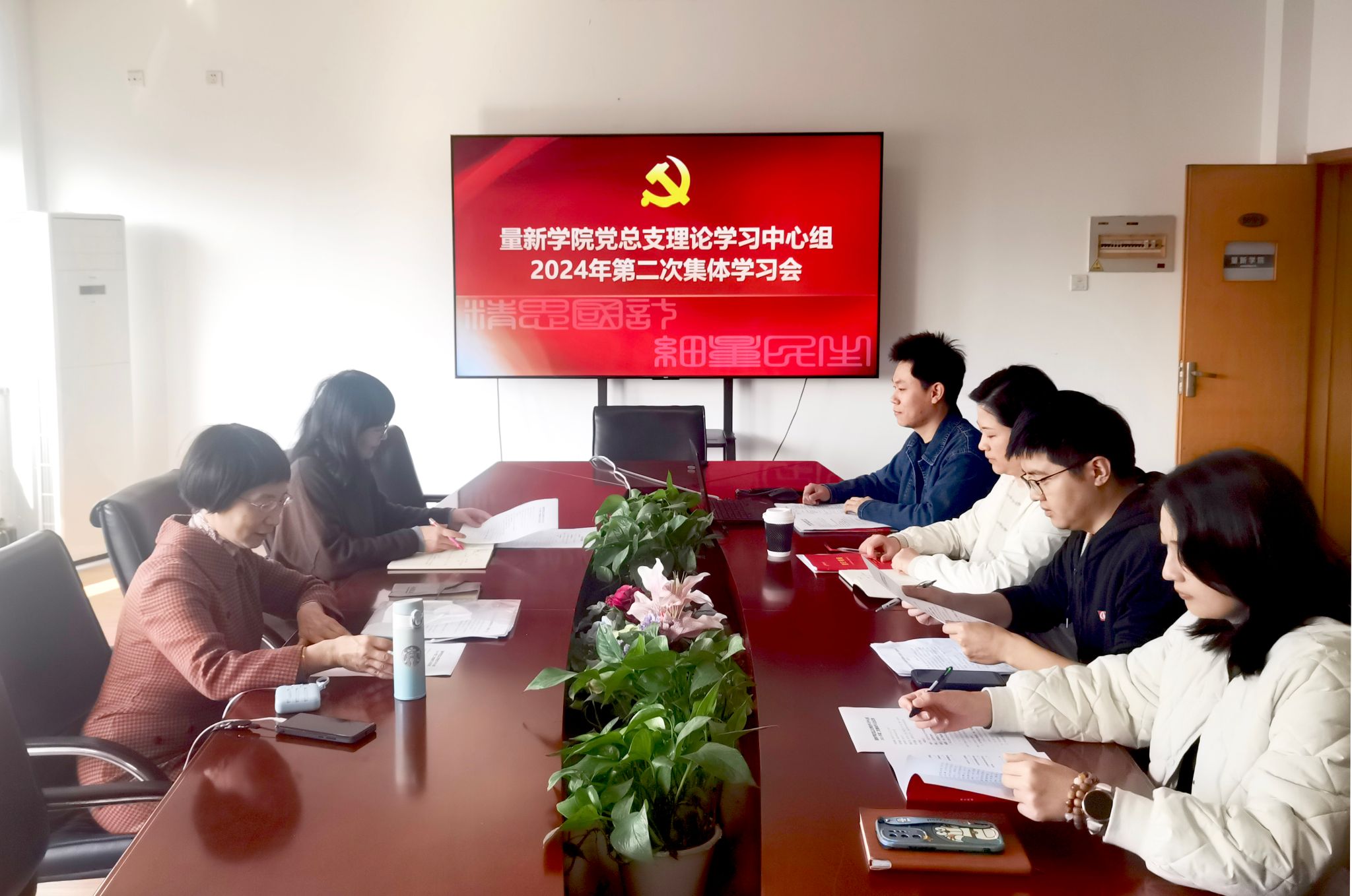 3月22日,量新学院党总支理论学习中心组举行“发展新质生产力,推动学院高质量发展”专题学习会,专题学习了习近平总书记关于新质生产力的重要论述、全国两会精神、全国教育工作会议精神和全省“新春第一会”精神。学院中心组全体成员参加学习。会议由院党总支书记顾佳隽主持。