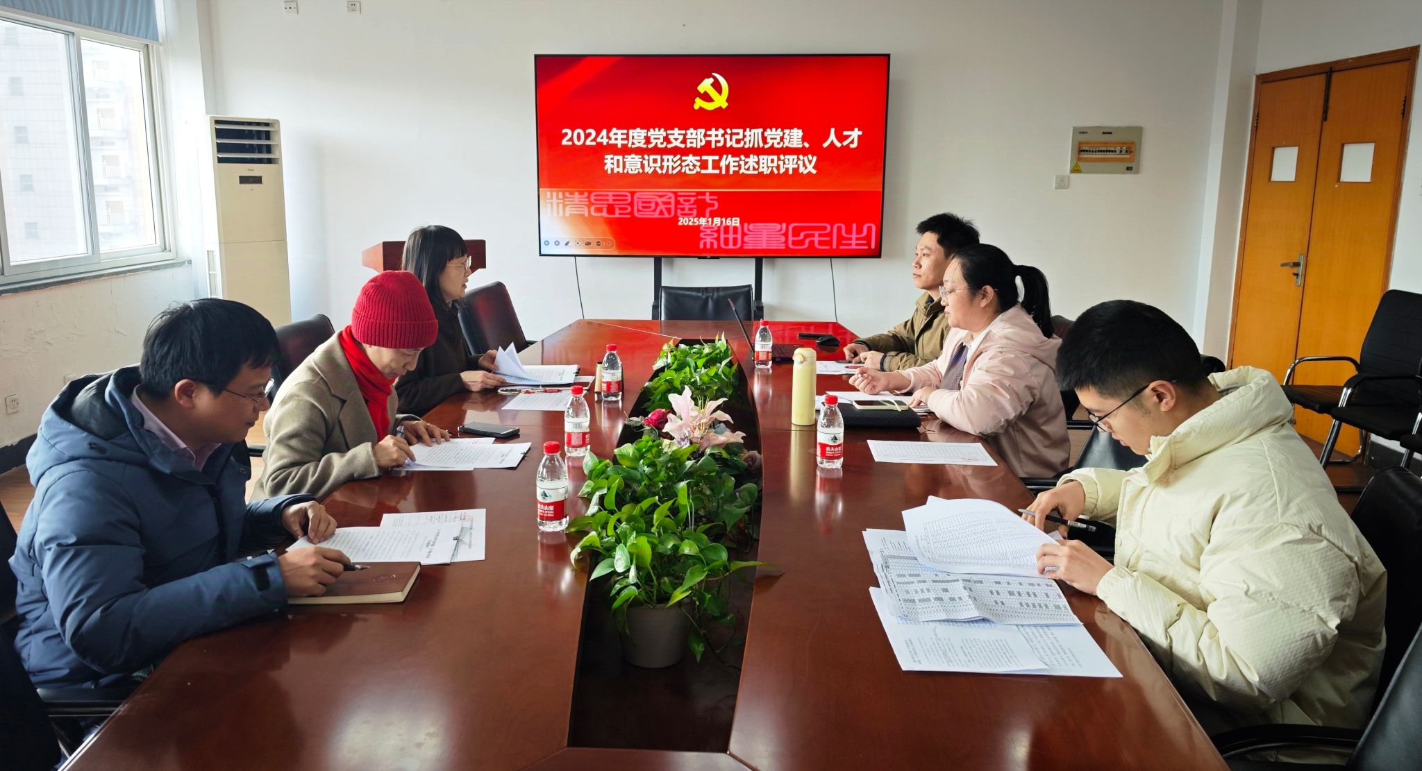 1月16日,量新学院党总支召开2024年度党支部书记抓党建、人才和意识形态工作述职评议会。学院党政领导班子成员、师生党支部书记、师生代表等参加会议。会议由院党总支书记顾佳隽主持。