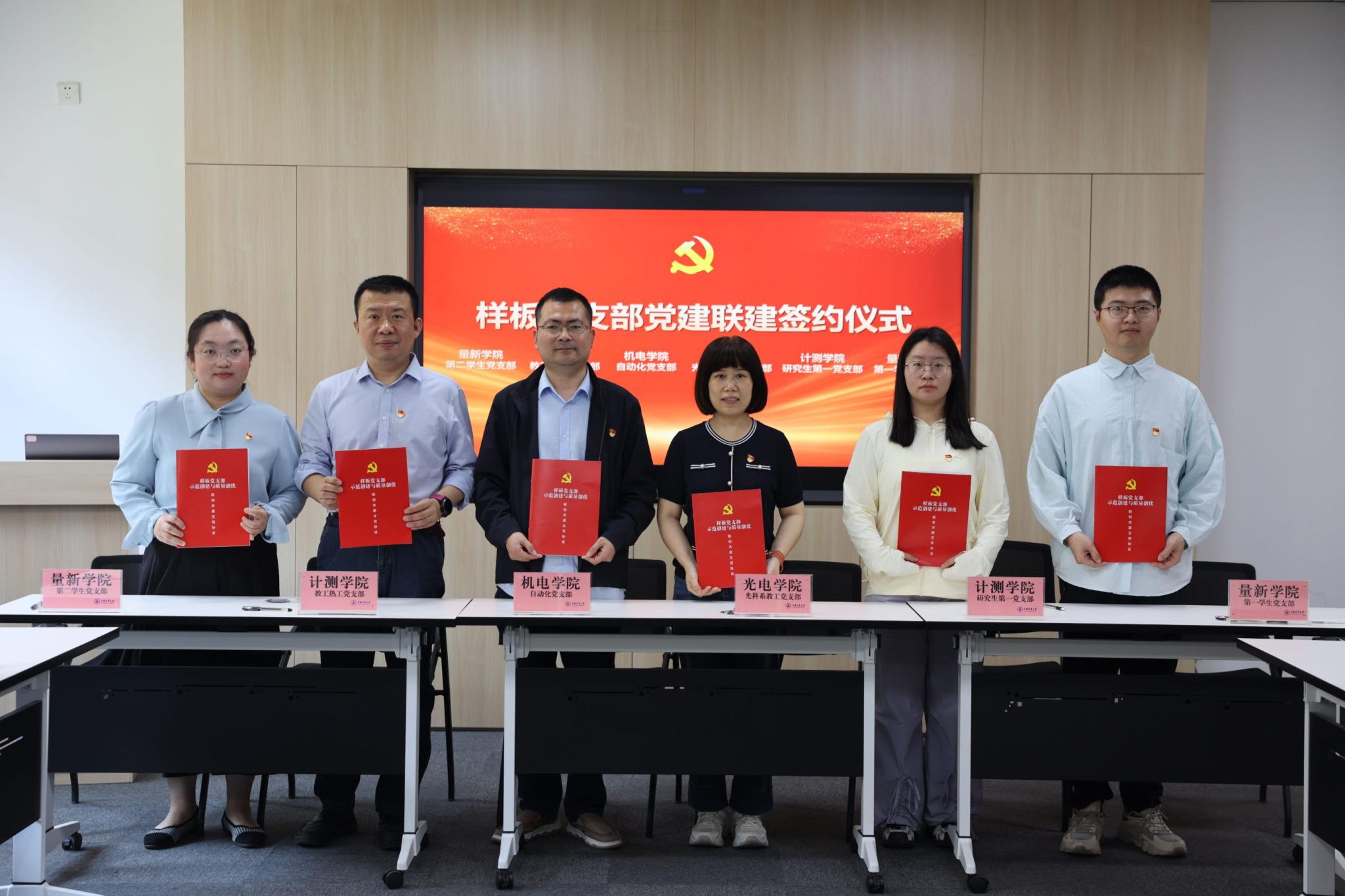 机电学院自动化党支部、光电学院光科系教工党支部、计测学院教工热工党支部和研究生第一党支部、量新学院第一和第二学生党支部,6个跨学院、跨类型的样板党支部联创新型“党建联建共同体”,合力推进大仪器学科人才培养,开启了校内“国家级-省级-校级”样板党支部的三级联建和“教工党支部-研究生党支部-本科生党支部”的三线贯通,旨在探索一种“融合型”党建工作的新模式。