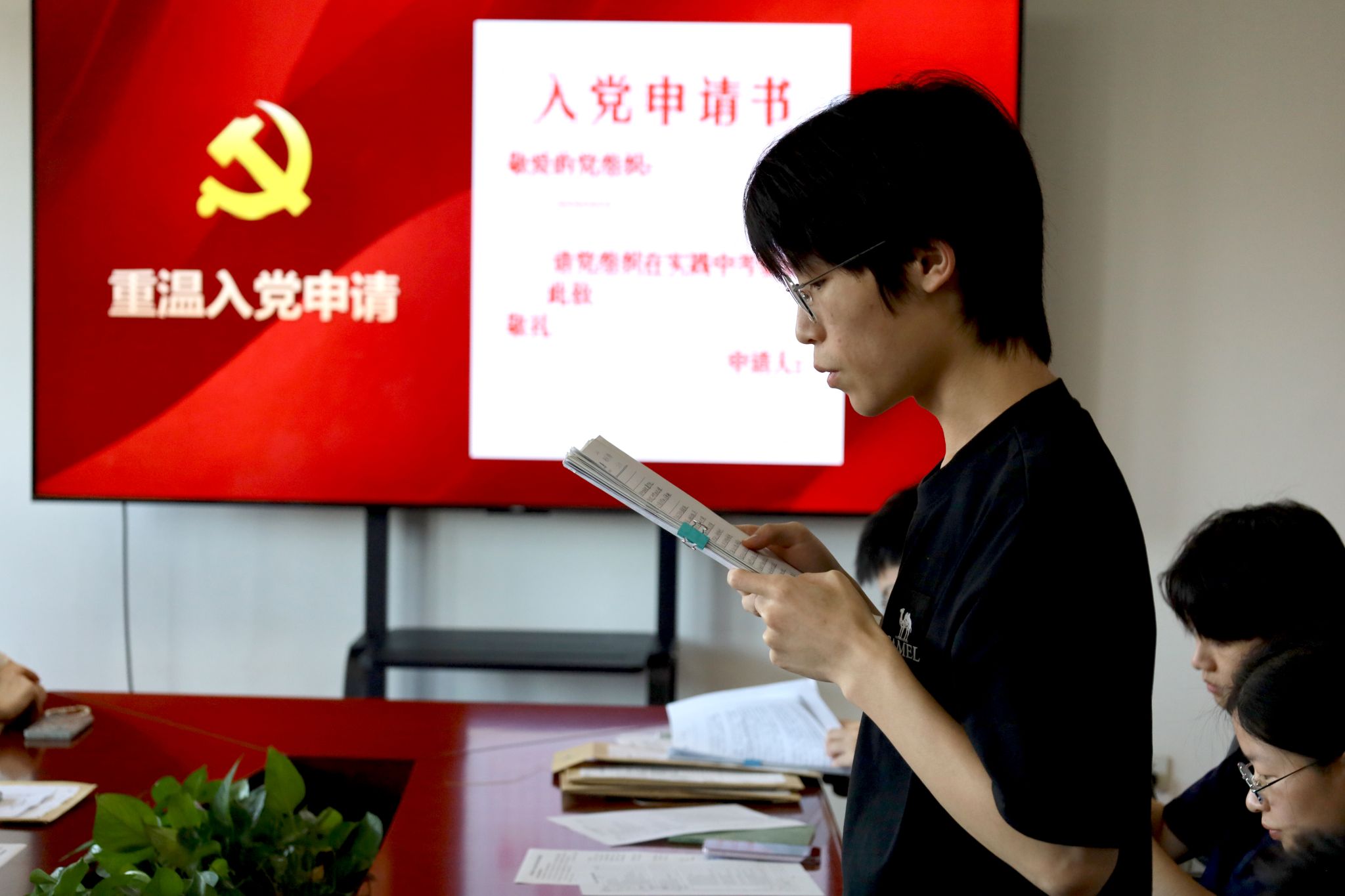 33名毕业生党员重拾入学时提交的《入党申请书》,逐字逐句重温入党志愿,追忆党员发展历程,共忆入党初心、坚定理想信念。