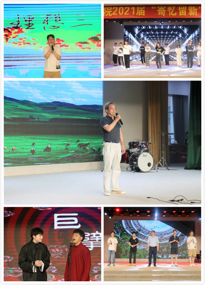 晚会伊始,曾教授2021届毕业生《电子技术》课程的李青老师为大家带来一曲《天边》,歌声高亢,气势磅礴,现场掌声雷动。曲罢,李老师勉励即将踏上新征程的毕业生们,以后无论在何领域,要保持勤恳努力,为祖国的发展贡献力量。随后,精彩的节目继续,J舞社和器乐团的劲歌热舞彰显着青春个性,相声《洪洋洞》收获一片欢声笑语,历届十佳歌手们演绎《讲不出再见》、《枫》、《理想三句》等歌曲抒情动听、直抵人心,学生会执委舞蹈《恋》用心为毕业学长送去深深祝福。最后,由毕业生辅导员于兹瀛与毕业班班长合唱的歌曲《十年》将整场晚会的气氛推向高潮。温情的歌词萦绕耳旁,好像大学里的点点滴滴就发生在昨天,大家依依不舍,被即将离别的氛围深深感染。