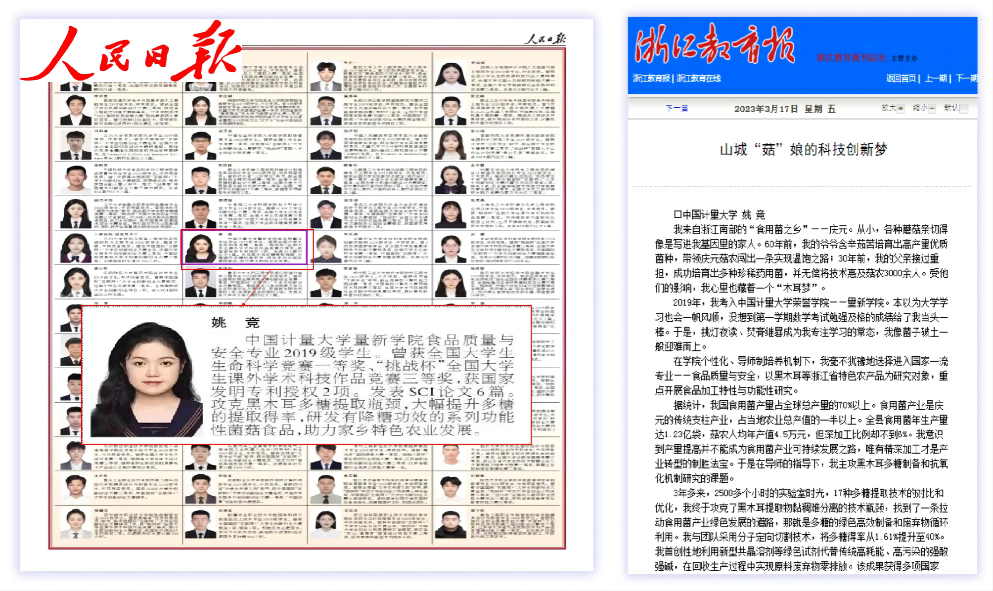 量新学子风采和育人成效相继被《人民日报》《中国青年报》《浙江教育报》等3家国家级、10家省级媒体报道。