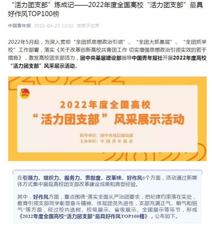 20工试2班团支部成功入围全国高校“活力团支部”最具好作风TOP100,获评浙江省高校“活力团支部”最具好作风TOP10。