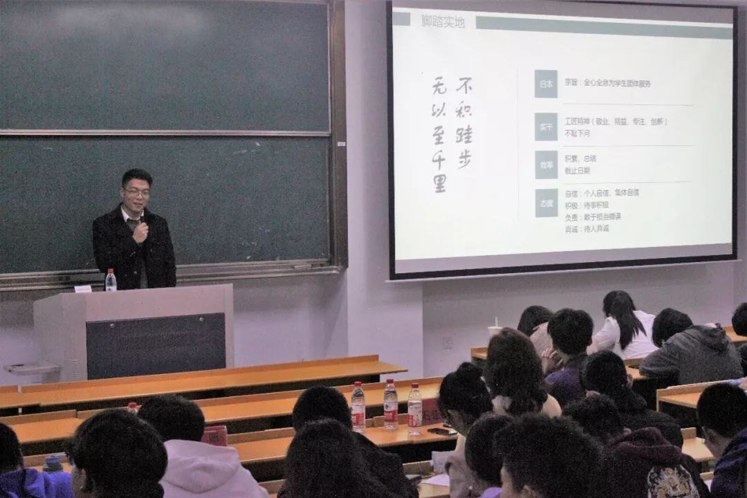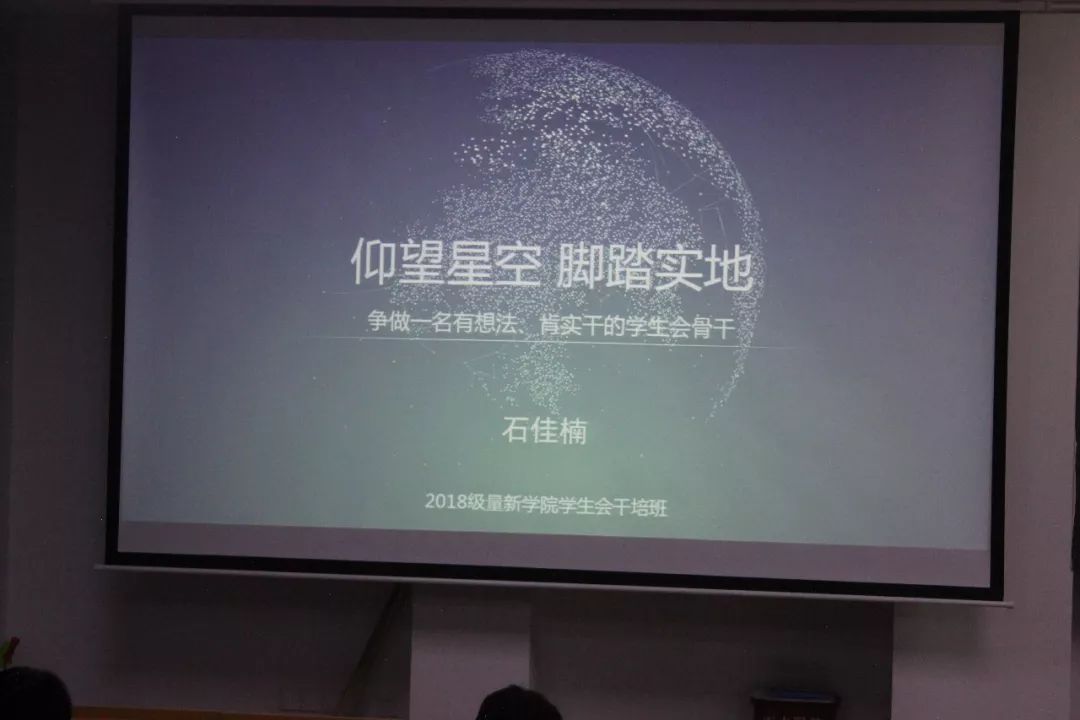 接着,石佳楠学长向学弟学妹们分享了自己的工作经历与成果,他用自己的努力使量新学院学生会组织的运转机制更加完善,这也对学弟学妹们有了很大的启迪。