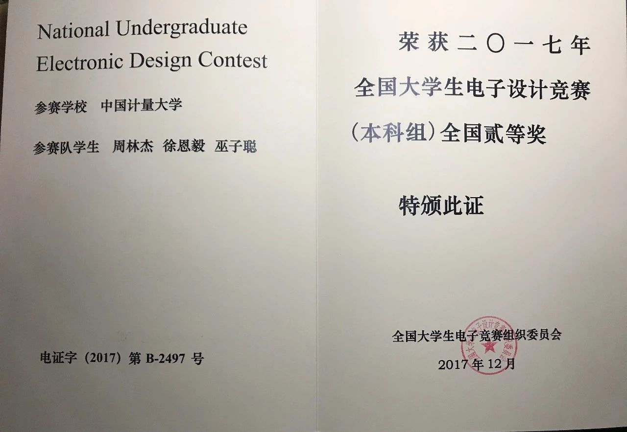 重要的转折点是学校的电子竞赛,我们组通过自己做的全智能电风扇获得了校一等奖,我知道这个荣誉是老师对我们的鼓励与认可,让我更有自信去备战冲刺未来未知的挑战。有幸于这次获奖,我对自己有了更深刻的认识,我获得了和大二学长组队参加全国电子设计大赛国赛预备队的机会。