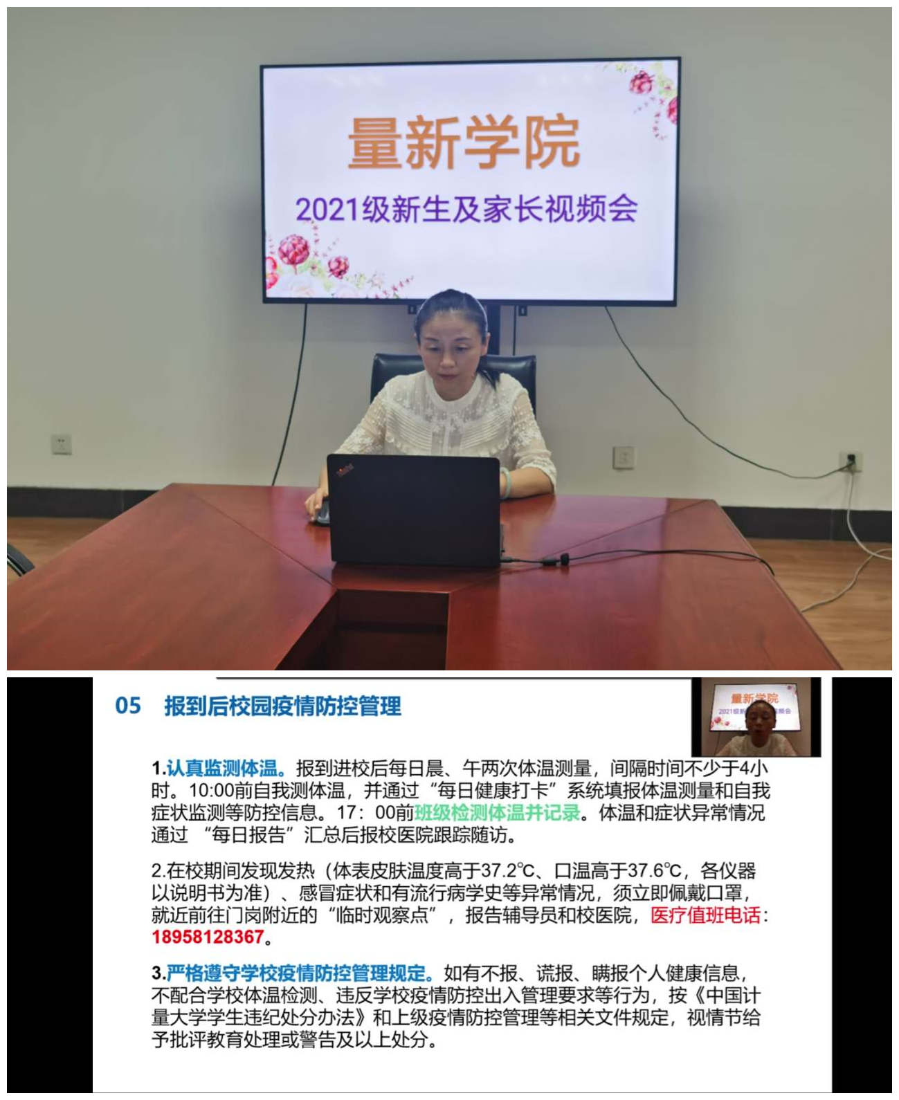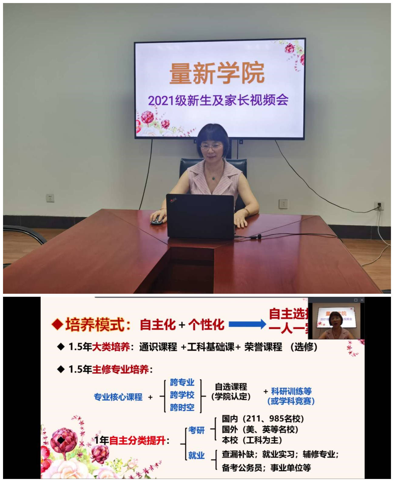 根据学校防控要求,家长在迎新当天不可以进校。为了让家长们了解学生的学习生活环境,了解学院的办学特色、相关要求及报到注意事项,学院8月30日晚召开线上家长学生视频会议,全体新生和家长观看了视频直播。毛成院长代表学院对全体新生及家长表示热烈欢迎。她向家长和学生展示了荣誉学院的办学特色和成效,详实地介绍了学院的培养目标、理念和模式。最后,毛成希望新生们明确大学学习任务,尽快适应并融入大学生活;向家长们提出了几件需要配合的事情,希望家校共同协作促进学生成长成才。学院党总支书记杨娜就开学具体安排、疫情防控相关要求和报到旅途注意事项进行了说明和提醒,并向新生和家长展示了校园风光,期待学生如期安全报到。