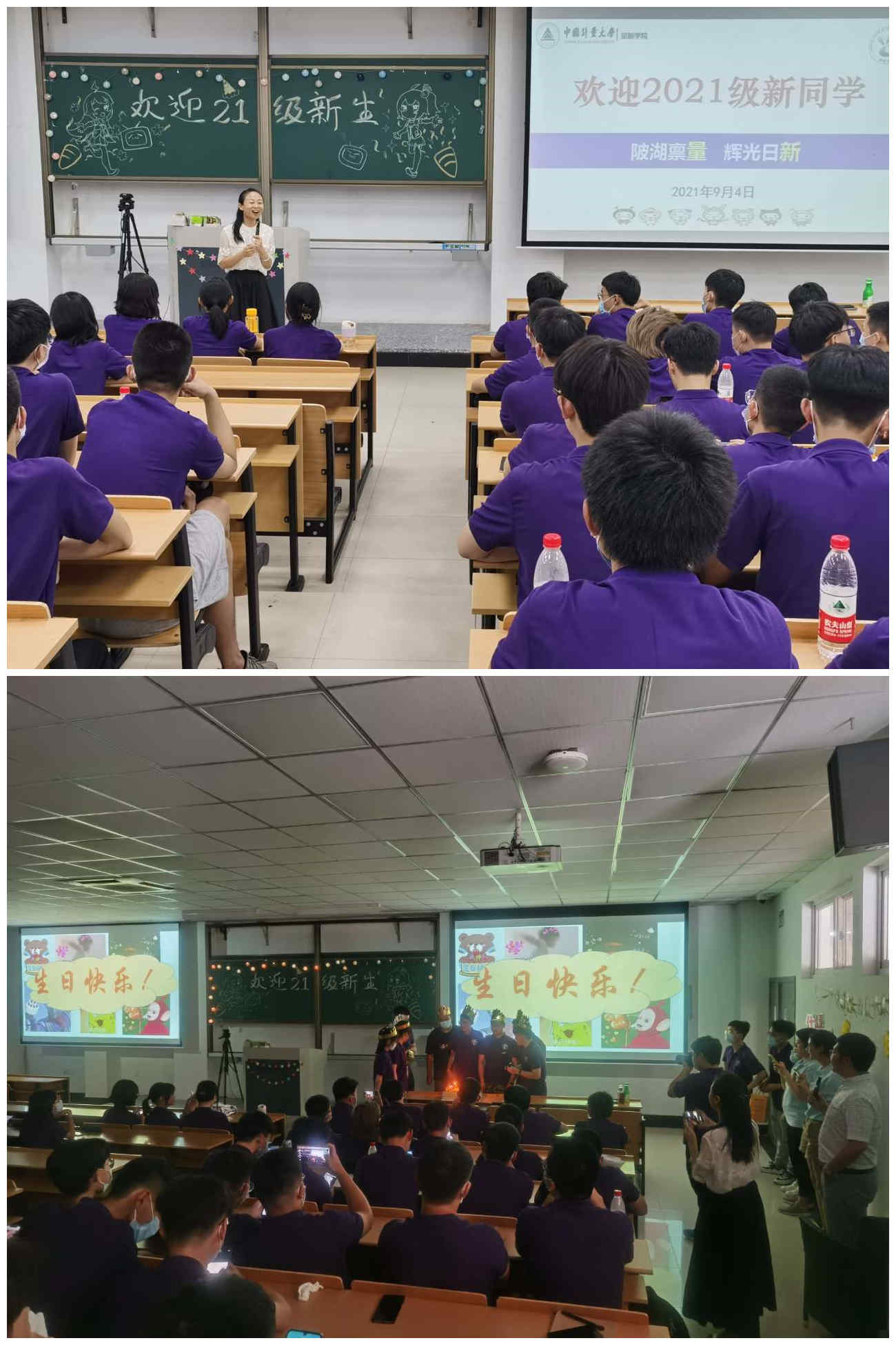 9月4日13:30,翔宇101教室,学生会的同学们正在紧张有序的为新生们准备“惊喜”。21级新生们准时来到教室参加新生入学教育大会。在大会开始前,8名九月份生日的新生被点名小程序“抽选”出参与暖场游戏,在游戏结束以为要接受颁奖的时刻,突然灯光暗下,音乐响起,生日蛋糕被缓缓推入,全场欢声四起。这不仅是六名新生的生日,也是在场所有人的入学纪念日,惊喜、感动的情绪感染着现场每一个人。