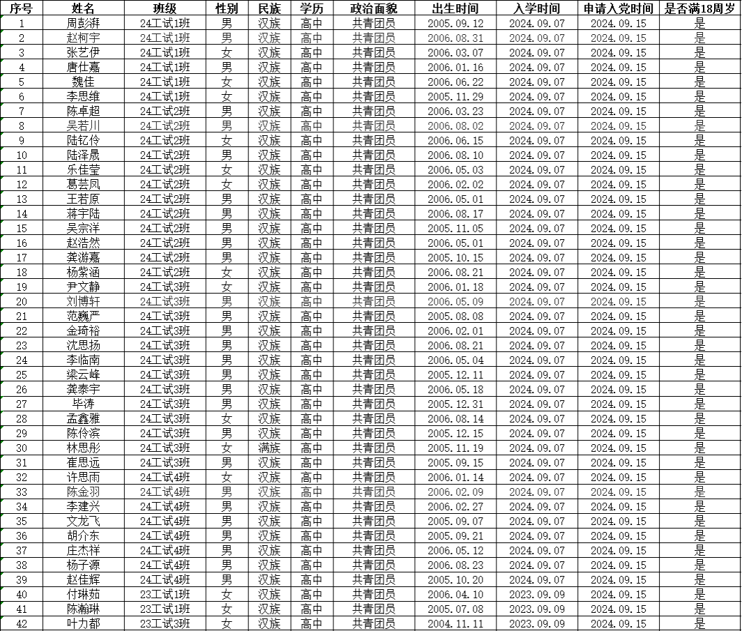 关于周彭湃等42名同志提交入党申请书的公示(2024年下半年)