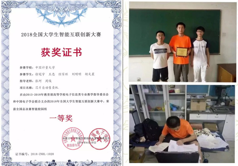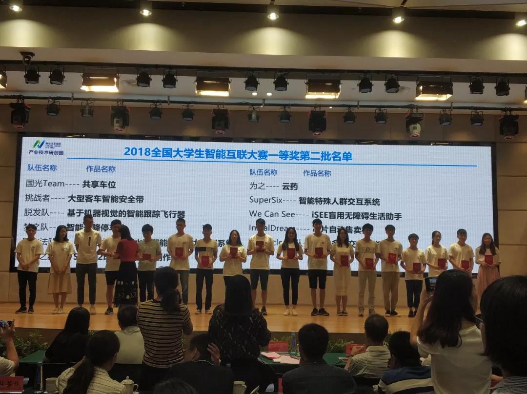 15工试1班徐冠宇、17工试1班刘浩然、及欣悦、张佳悦获得2018年大学生智能互联创新大赛全国总决赛一等奖。