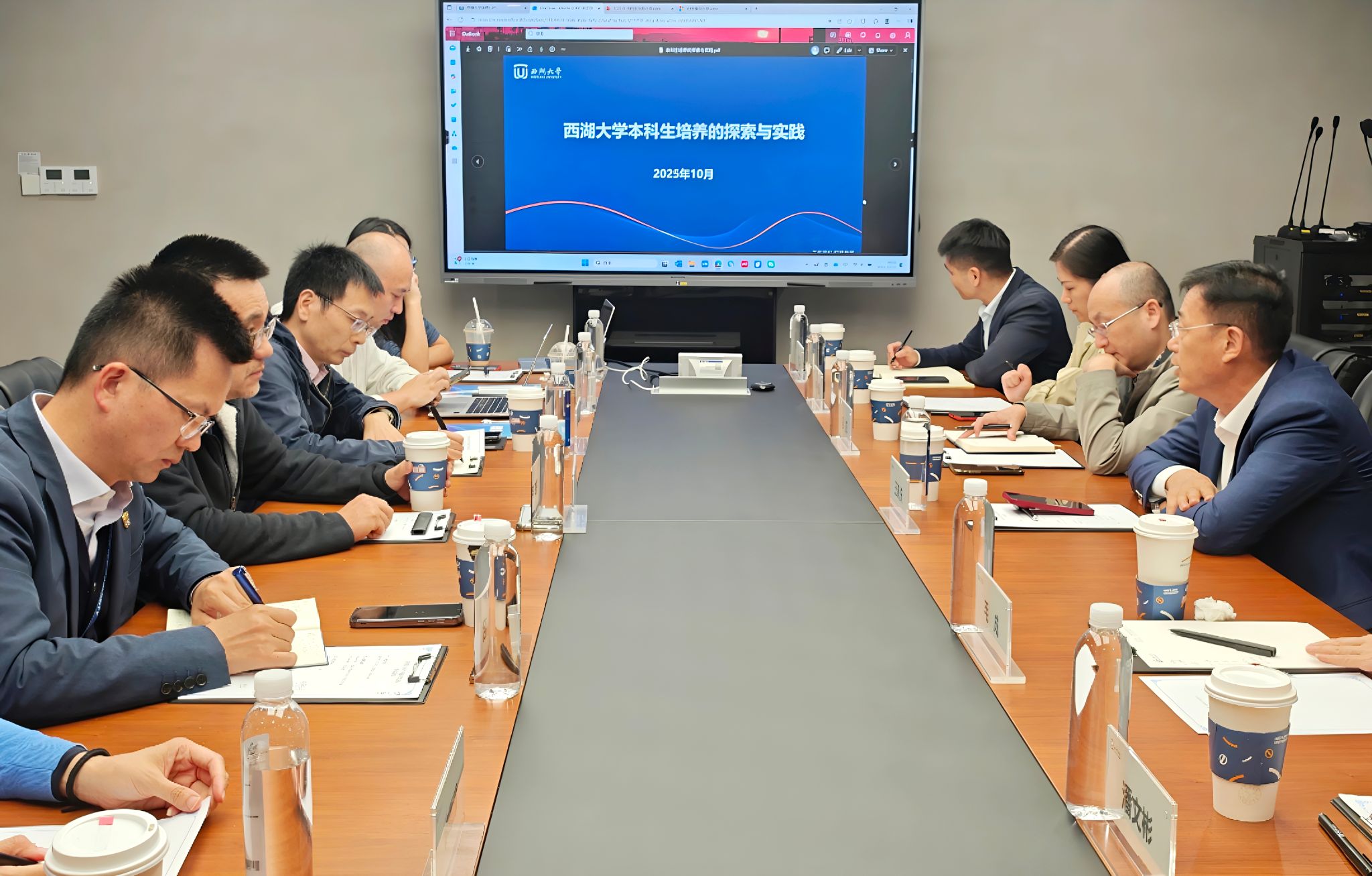 为深入推进学校拔尖创新人才培养,10月23日下午,副校长王新庆带队赴西湖大学调研交流。量新学院院长毛成、党总支书记马正等陪同调研。西湖大学校长助理兼本科生书院院长陈虹宇、学生事务部主任许紫岳、教学事务部常务副主任黄召、通识教育中心常务副主任仇建、学生事务部副主任兼本科生书院行政副院长徐愿濛等参加座谈交流。