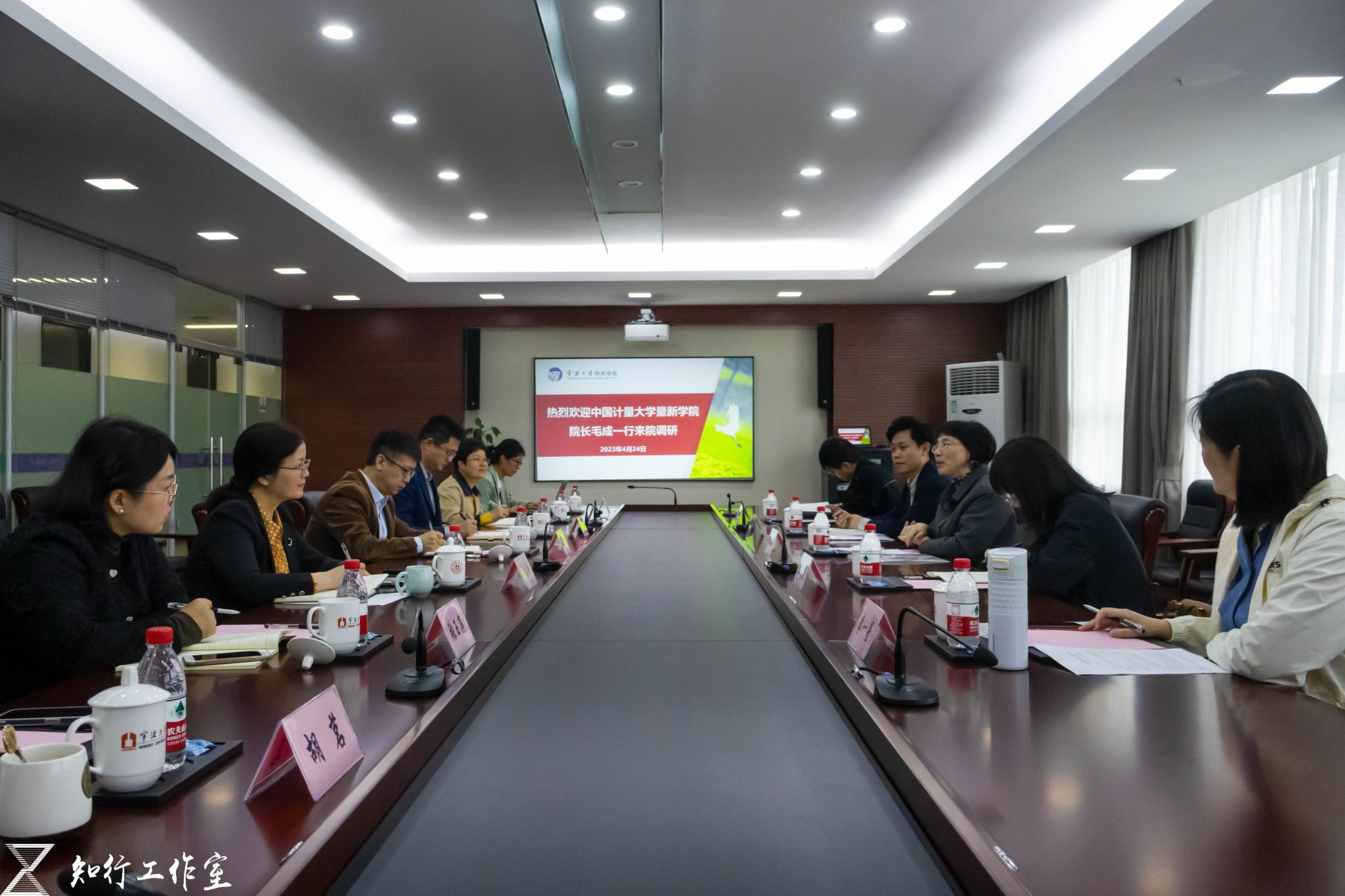 为坚决贯彻党中央、省委决策部署,落实学校党委要求,以调查研究推动主题教育走深走实,4月24日,量新学院院长毛成、党总支书记顾佳隽、办公室主任潘文彬、教学主管李一星、辅导员林学利等一行5人赴宁波大学阳明学院开展学习调研。阳明学院院长战洪飞、党委书记俞金波、副院长单佳平等接待了调研组一行。双方围绕“荣誉学院拔尖人才培养机制改进与优化”进行了交流座谈。